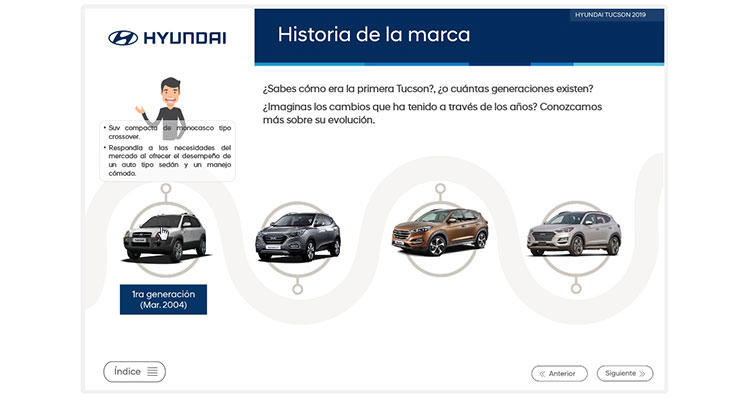 Desarrollo eLearning para HyundaiDiseño y producción de tres cursos elearning de interactividad media para capacitar a personal de ventas. Leave a Reply Cancel Reply Guardar mi nombre, correo electrónico y sitio web en este navegador para la próxima vez que haga un comentario.